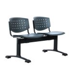 Banqueta Layer, asiento y respaldo de polipropileno inyectado con color a elección, Pata Splash negra. Topes de goma y patines que permiten la nivelación con respecto al piso.