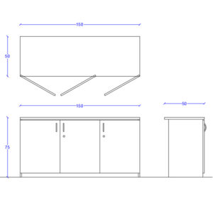 Mueble fabricado en melamina de 18mm de espesor, cubierta de 25mm enchapada en laminado decorativo de color a elección.