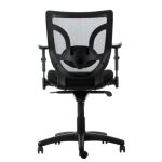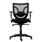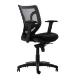 Silla Happy, Silla ejecutiva de respaldo en malla negra con apoyo lumbar fijo, asiento tapizado en tela negra, mecanismo reclinable con regulación de tensión del respaldo y regulación de altura, brazos fijos negros, base nylon negra.