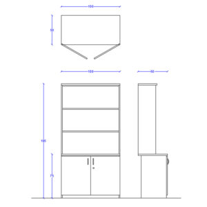 Biblioteca fabricada en melamina de 18mm de espesor con cantos de PVC.