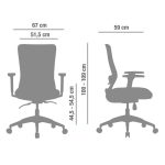 Silla modelo NEO 45. Respaldo alto Up & Down en malla, apoyo lumbar regulable en altura, desplazador de asiento, asiento tapizado,