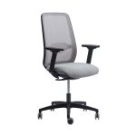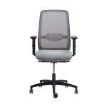 Silla modelo NEO 45. Respaldo alto Up & Down en malla, apoyo lumbar regulable en altura, desplazador de asiento, asiento tapizado,