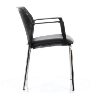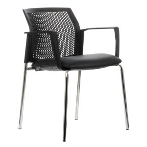 Silla de estructura cuatro patas de perfil redondo cromada. Respaldo en malla negra. Asiento tapizado en tela malla negra. Brazos fijos incorporados a su estructura.