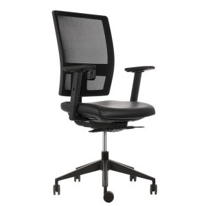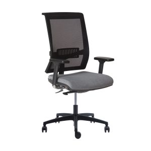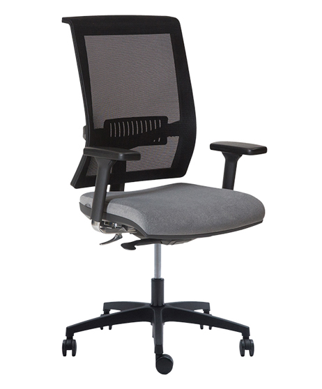 Silla modelo NEO 45. Respaldo alto Up & Down en malla, apoyo lumbar regulable en altura, desplazador de asiento, asiento tapizado,
