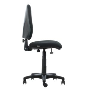 Silla operativa de respaldo alto tapizado, con color a elección. El asiento puede ser tapizado en varios tipos de materiales. Esta silla puede contar con un mecanismo sincrónico multibloqueo. Cuenta con base nylon, compatible con base aluminio. Sin brazos.